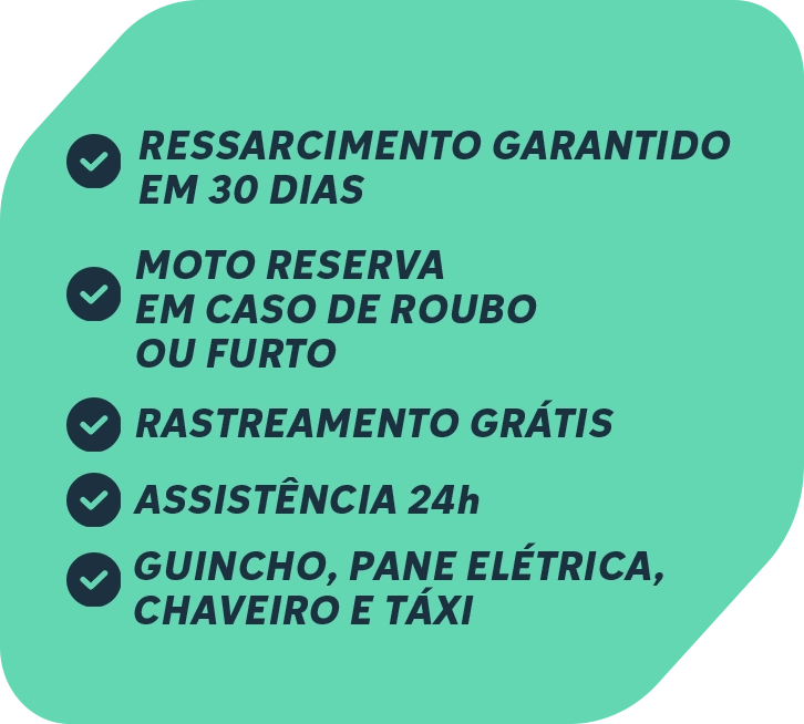 se sua moto for roubada, você recebe Moto Reserva Garantida para não parar sua rotina.